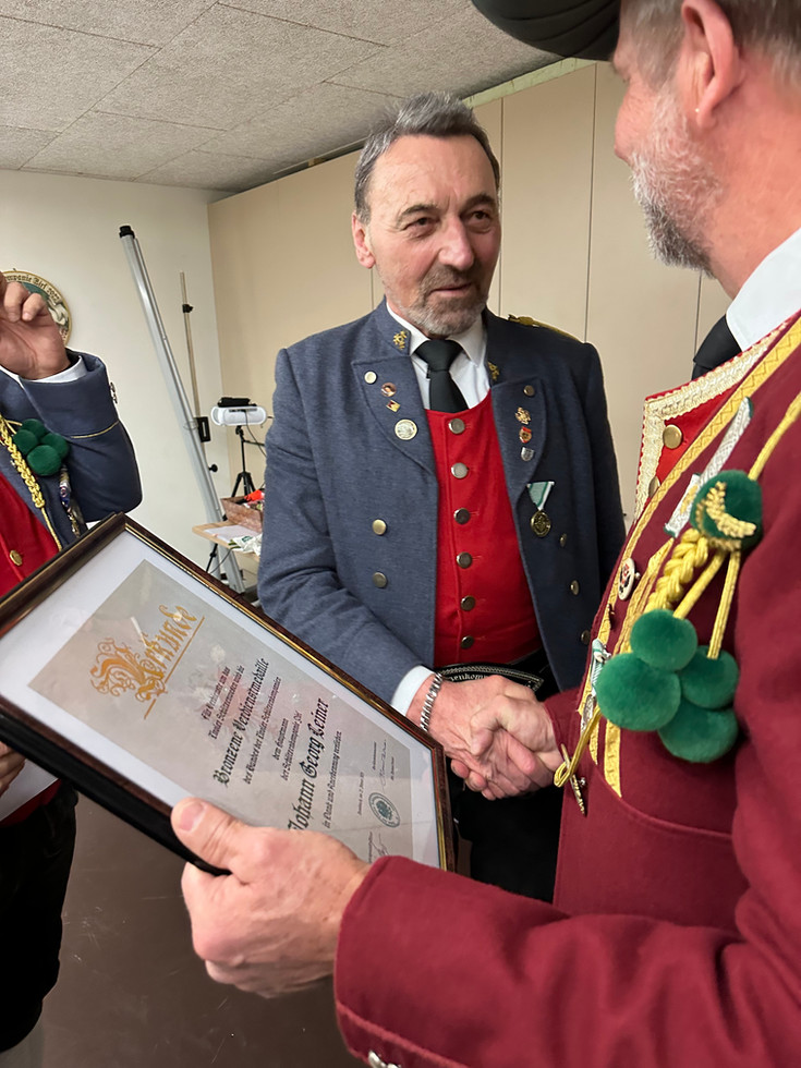 Das alles, und auch noch viel mehr ist Grund dafür, Stephan Zangerl bei uns als Ehrenmitglied der Kompanieversammlung vorzuschlagen. Die Kompanieversammlung bestätigte unseren Vorschlag und wir dürfen am 04.03.2023, Stephan Zangerl als unser Ehrenmitglied der Kompanie begrüßen. Und noch zusätzlich dürfen wir, die Schützenkompanie, zusammen mit dem Landeskommandanten Major Thomas Saurerer, Stephan Zangerl den Eichenkranz für 50 Jahre Mitgliedschaft der Tiroler Schützen überreichen.